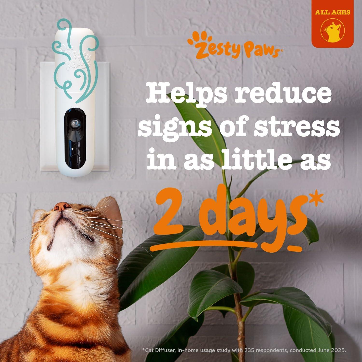 Zesty Paws 30 Day Cat Pheromones Calming Diffuser Plug-in Starter Kit - Cat Calming Diffuser for Cats with Stress, Urine Spraying, Scratching, Excessive Grooming & Aggression - Starter Kit(1 Pack Refill)