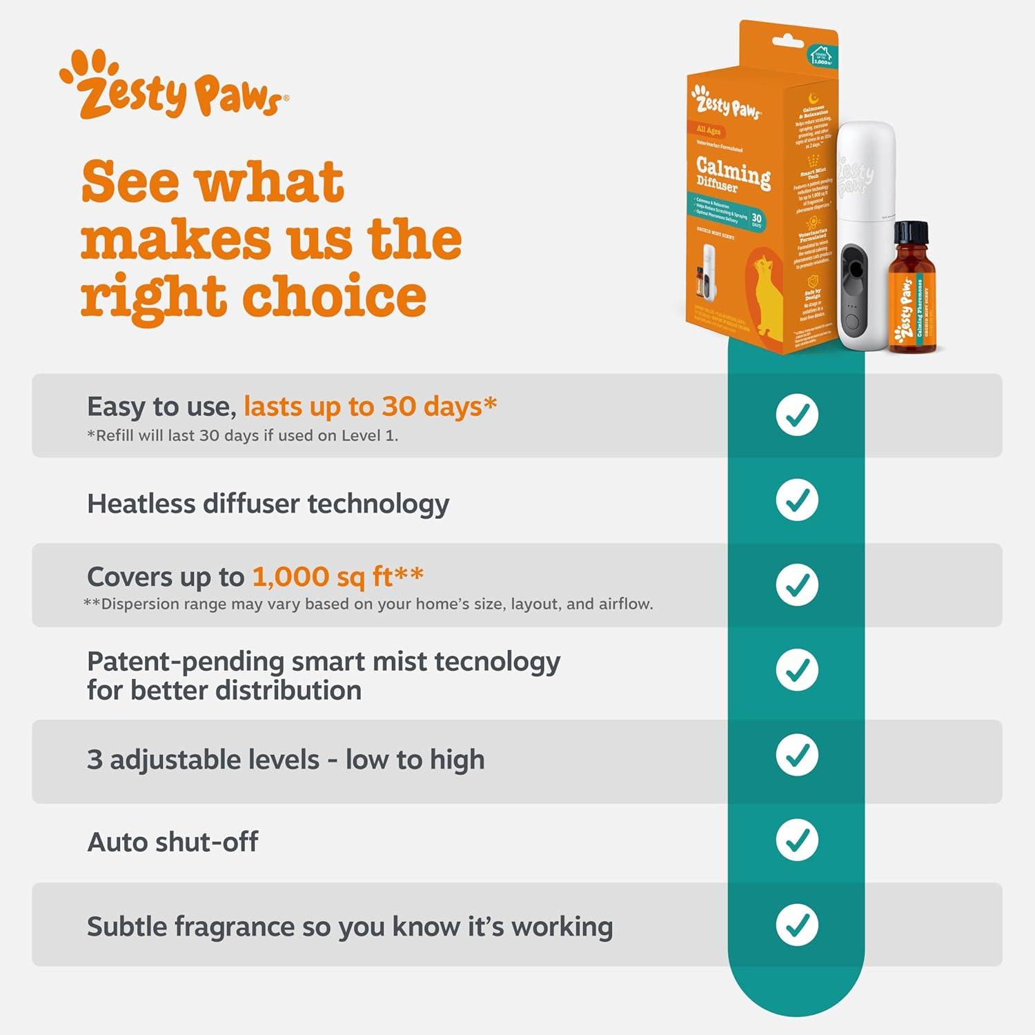 Zesty Paws 30 Day Cat Pheromones Calming Diffuser Plug-in Starter Kit - Cat Calming Diffuser for Cats with Stress, Urine Spraying, Scratching, Excessive Grooming & Aggression - Starter Kit(Starter Kit)