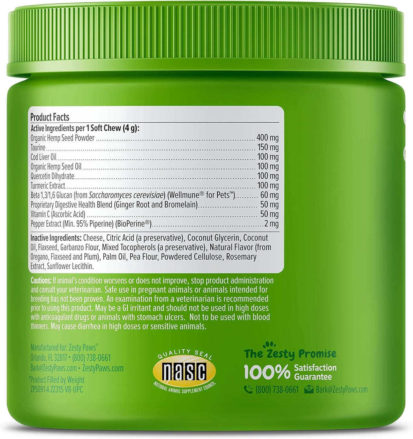 Zesty Paws Allergy Immune Soft Chews + Hemp Seed for Dogs - with Turmeric, Cod Liver Fish Oil, Beta Glucan, Vitamin C & Quercetin - Supports Dog Immune System Function + Seasonal Allergies - 90 Chews