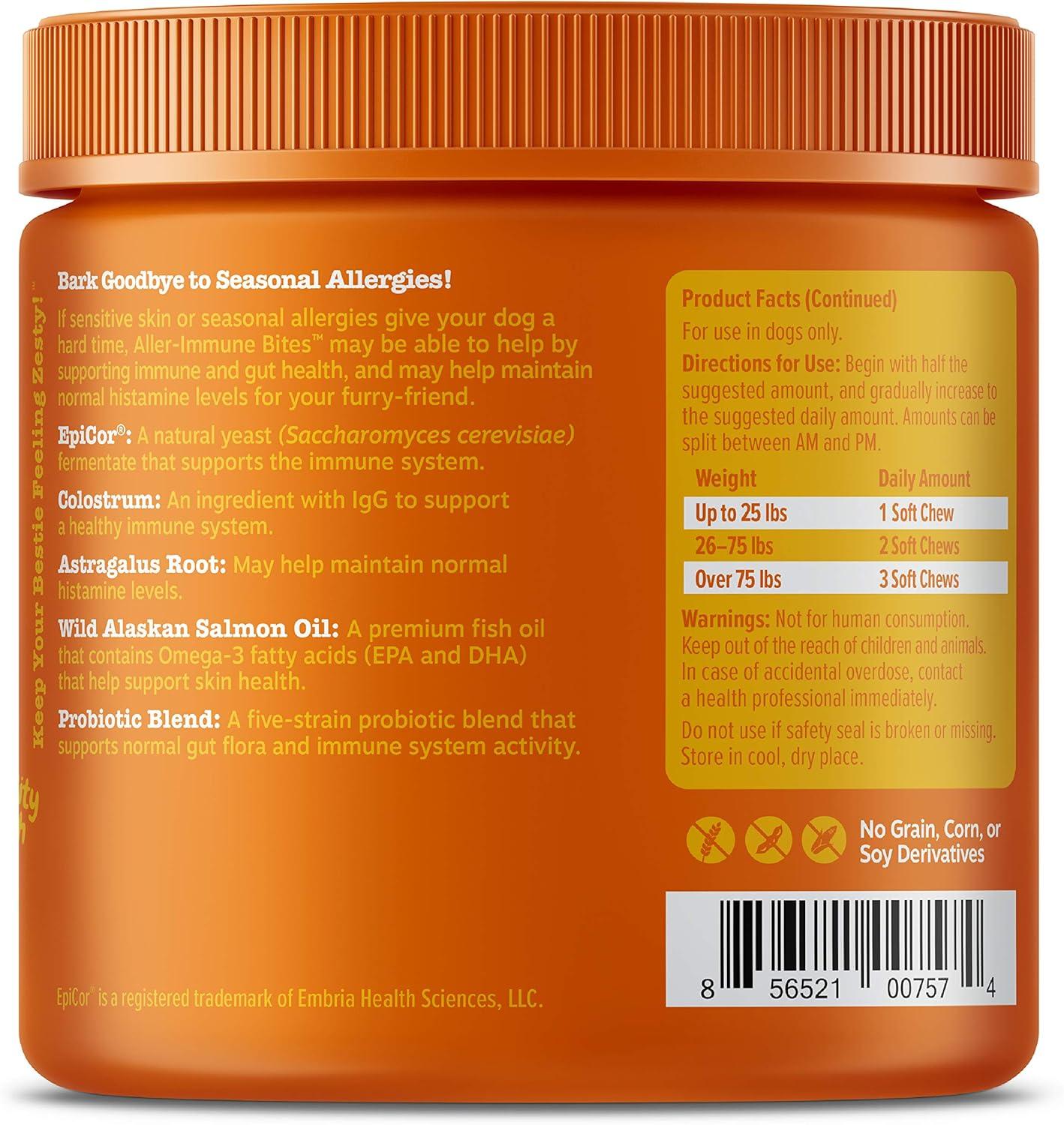 Boost the immune system – Zesty Paws Aller-Immune Bites are grain free soft chews that support immune, histamine, and digestive health for dogs with skin, seasonal, and environmental allergy issues.