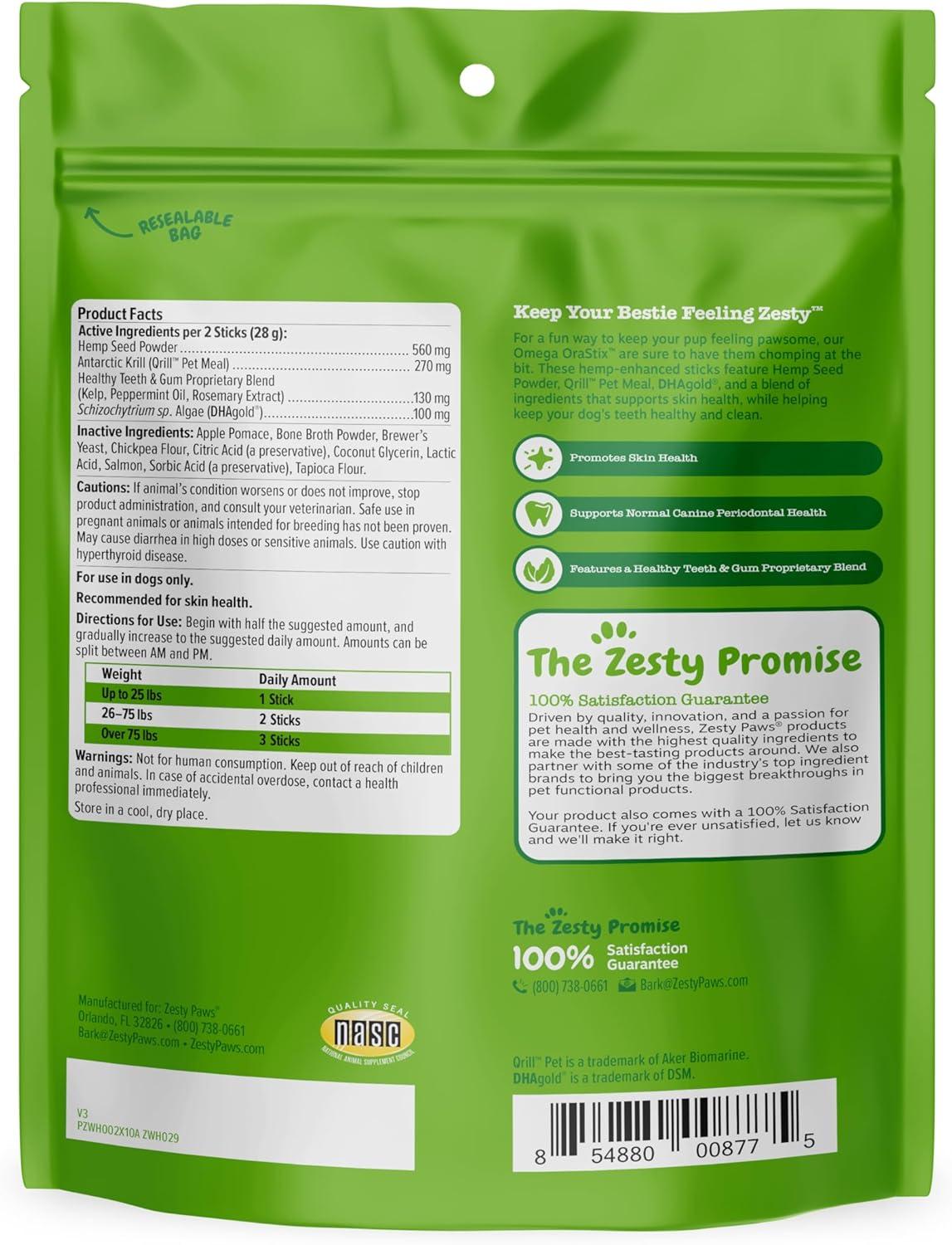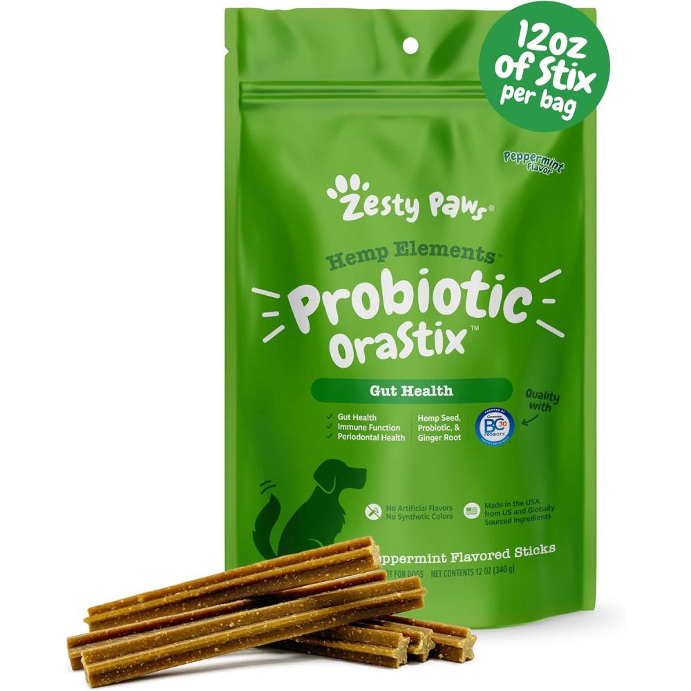 For Fido's Tummy – Zesty Paws Probiotic OraStix are premium sticks with ingredients that support canine gut and immune system function, along with supporting their periodontal health.