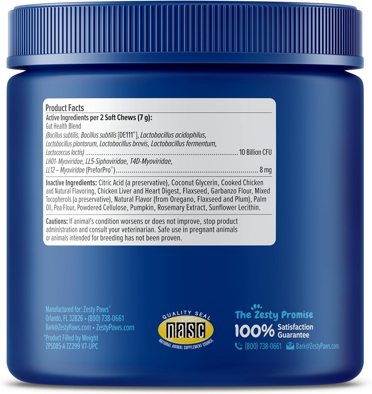 Zesty Paws Probiotics for Dogs, Digestive Enzymes Gut Flora, Digestive Health, Diarrhea & Bowel Support, DE111, Dog Probiotics Soft Chew for Pet Immune System, Chicken, 90 Ct(Chicken - Advanced)
